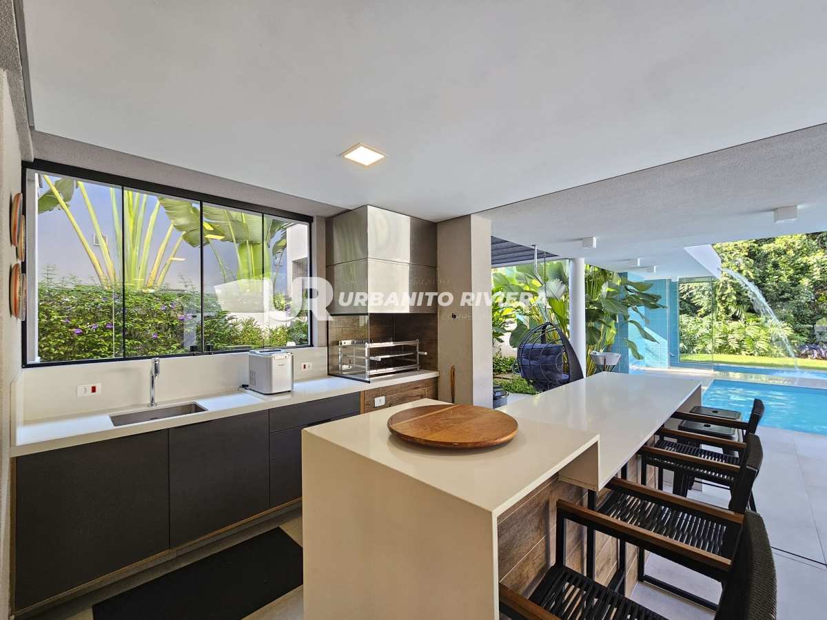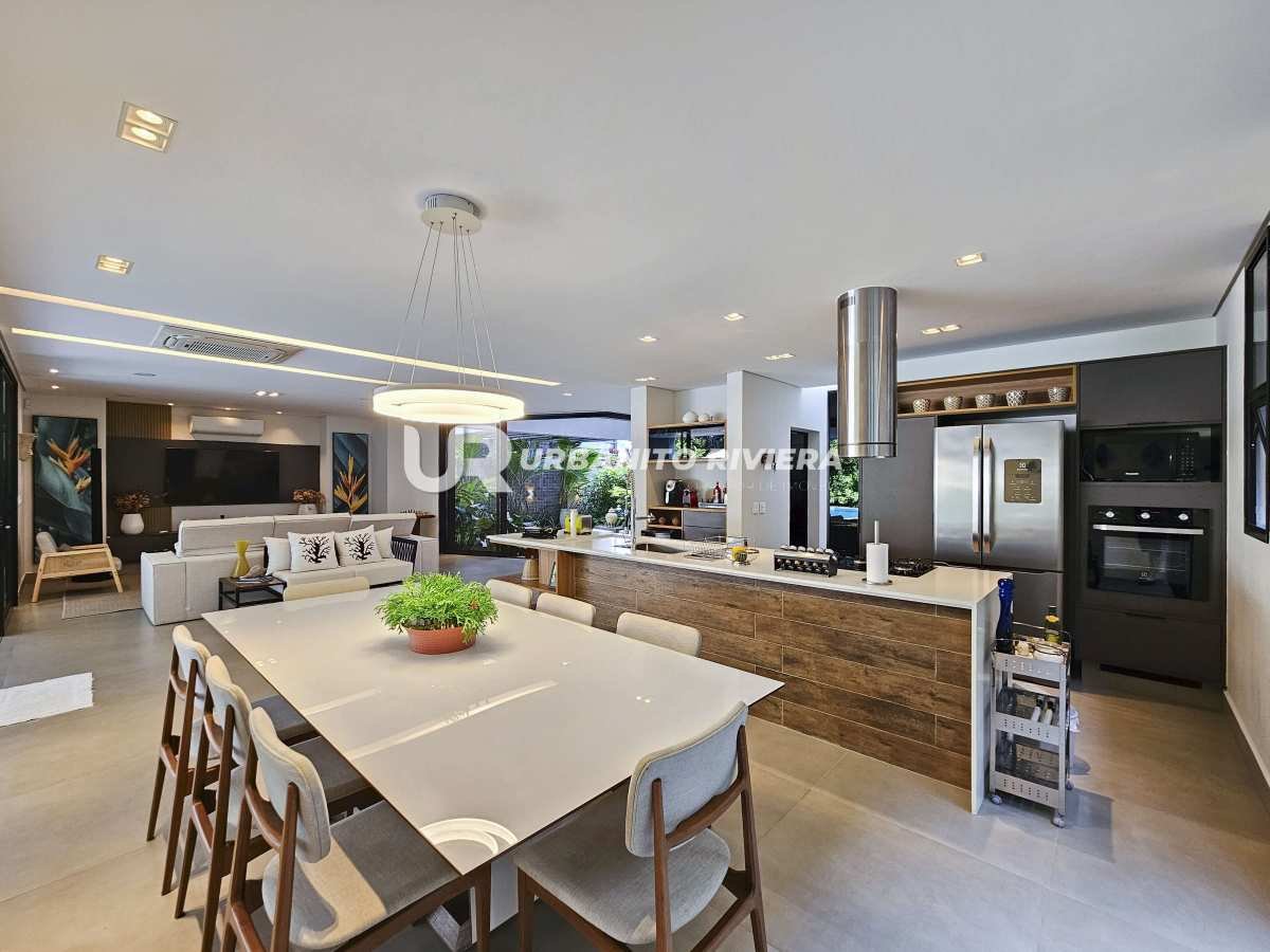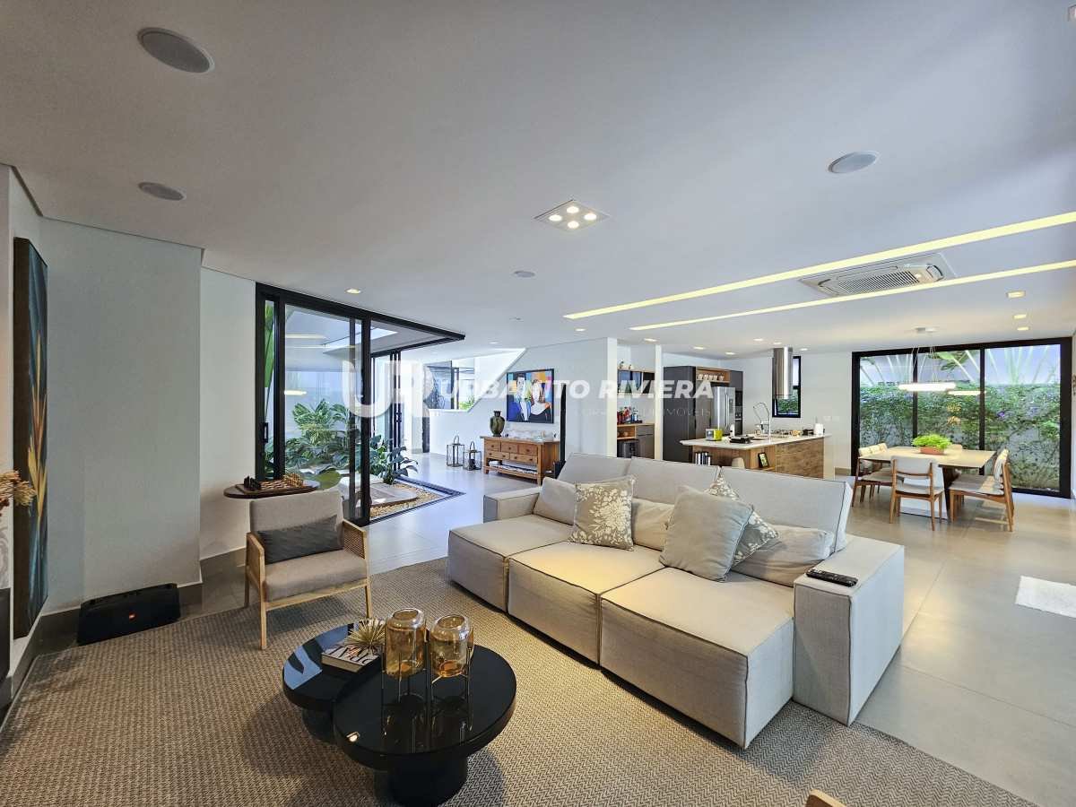 Com 5 amplas suítes, living integrado para dois ambientes e acabamentos de altíssimo padrão, a casa se destaca pelo uso de materiais nobres e design contemporâneo impecável, pensado nos mínimos detalhes para valorizar cada ambiente.